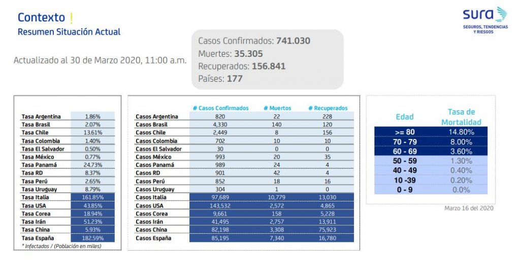 Hemos mencionado en otras oportunidades que la regulación persigue realidades sociales. Esto sí que se ha hecho evidente cuando, durante los últimos días y ante la crisis sanitaria que afronta el planeta, los gobiernos han reaccionado a partir de medidas de distinto nivel y profundidad, tendientes a mitigar o controlar la propagación de la epidemia. Es claro que el contexto regulatorio en el mundo en general, y en cada uno de los países en los cuales Suramericana tiene presencia, estaba preparado para situaciones ordinarias pero, de ninguna manera, para afrontar la situación actual.